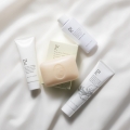 アンチエイジング成分(アルニカエキス、カミツレエキス、スギナエキス、オトギリソウエキス)など15種類の植物成分とアミノ酸系洗浄成分を配合した低刺激性ソープ。